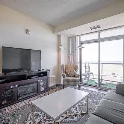 – Oversized balcony with unobstructed view of the water, sunset views and skyline views. Floor-to-ceiling windows, open-concept layout and in-suite laundry