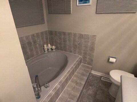 – Bathtub is peeling and could use a reglaze or replacement.